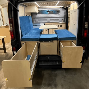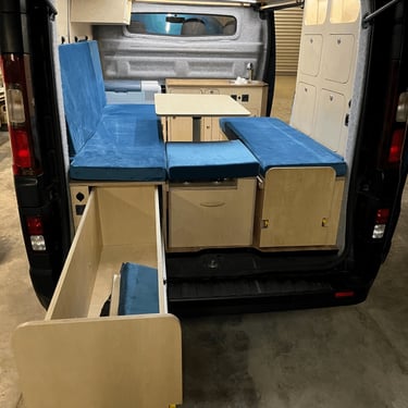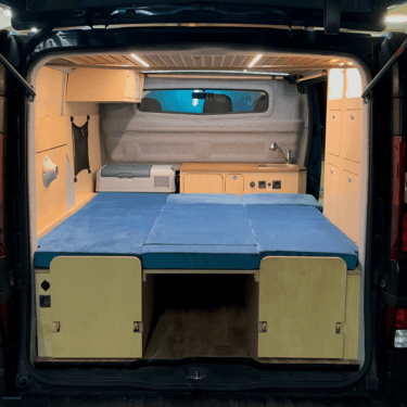 La demande de cet aménagement est de pouvoir voyager en France et à l'étranger été comme hiver pour 2 personnes dans un Trafic L1H1.