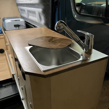 Evier profond équipé d'un mitigeur douchette extensible 1m50